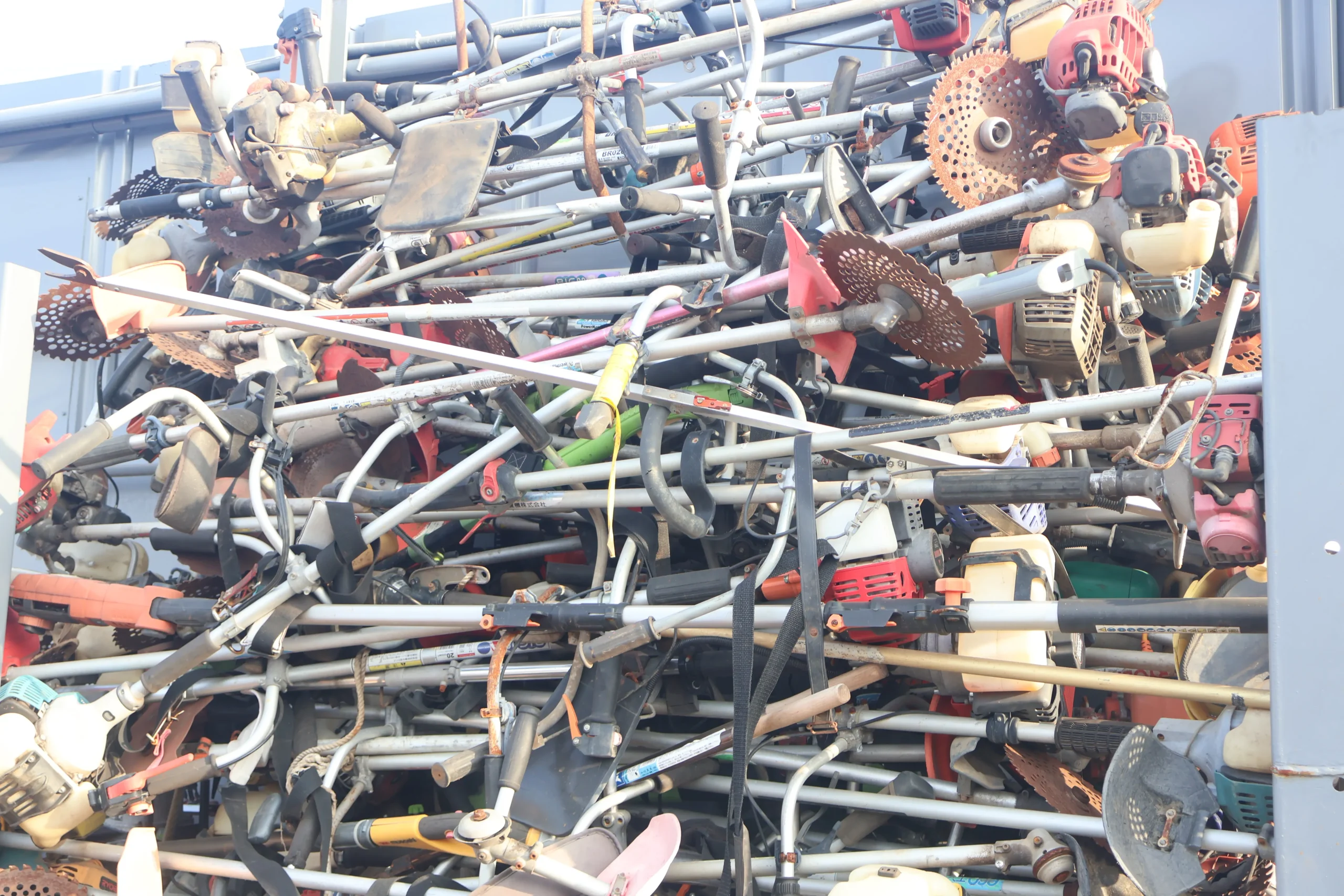 草刈機には、鉄・アルミ・銅 などの有用な金属部品が多く使用されており、スクラップとして再資源化することで新たな製品へと生まれ変わります。